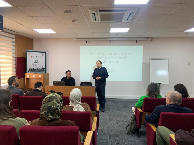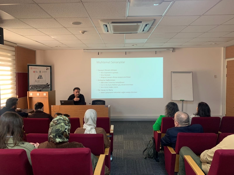 Siyaset Bilimi ve Uluslararası İlişkiler Bölüm Başkanımız Doç. Dr. Ahmet Okumuş’un moderatörlüğü ve Dr. Alireza Hodaei’nin anlatımıyla gerçekleşen seminerimizde İran savaşının siyasi ve ekonomik hazırlıkları, küresel etkileri ve bölgesel dinamikleri konuşuldu. Savaşın devam etmesi, anlaşma sağlanması veya soğuk savaşa dönebilmesi gibi tüm ihtimallerden söz eden Dr. Alireza Hodaei, muhtemel senaryoları örneklerle aktardı.